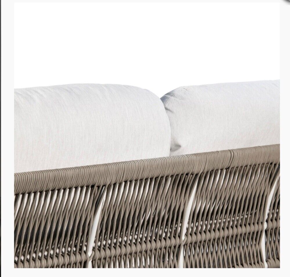 Our Heron outdoor range offers both aesthetics and stain and water resistance. With its casual bands of rope and powder-coated metal frame surrounding the sofa, this piece is stylish from every angle and in any environment. Thanks to its comfortable cushions, the Heron elevates that relaxed luxury look, making it the perfect range for outdoor living.