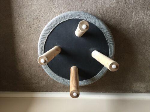 LOW STOOL/COFFEE TABLE/SIDE TABLE-TIMBER LEGS AND GREY KNITTED NYLON TOP