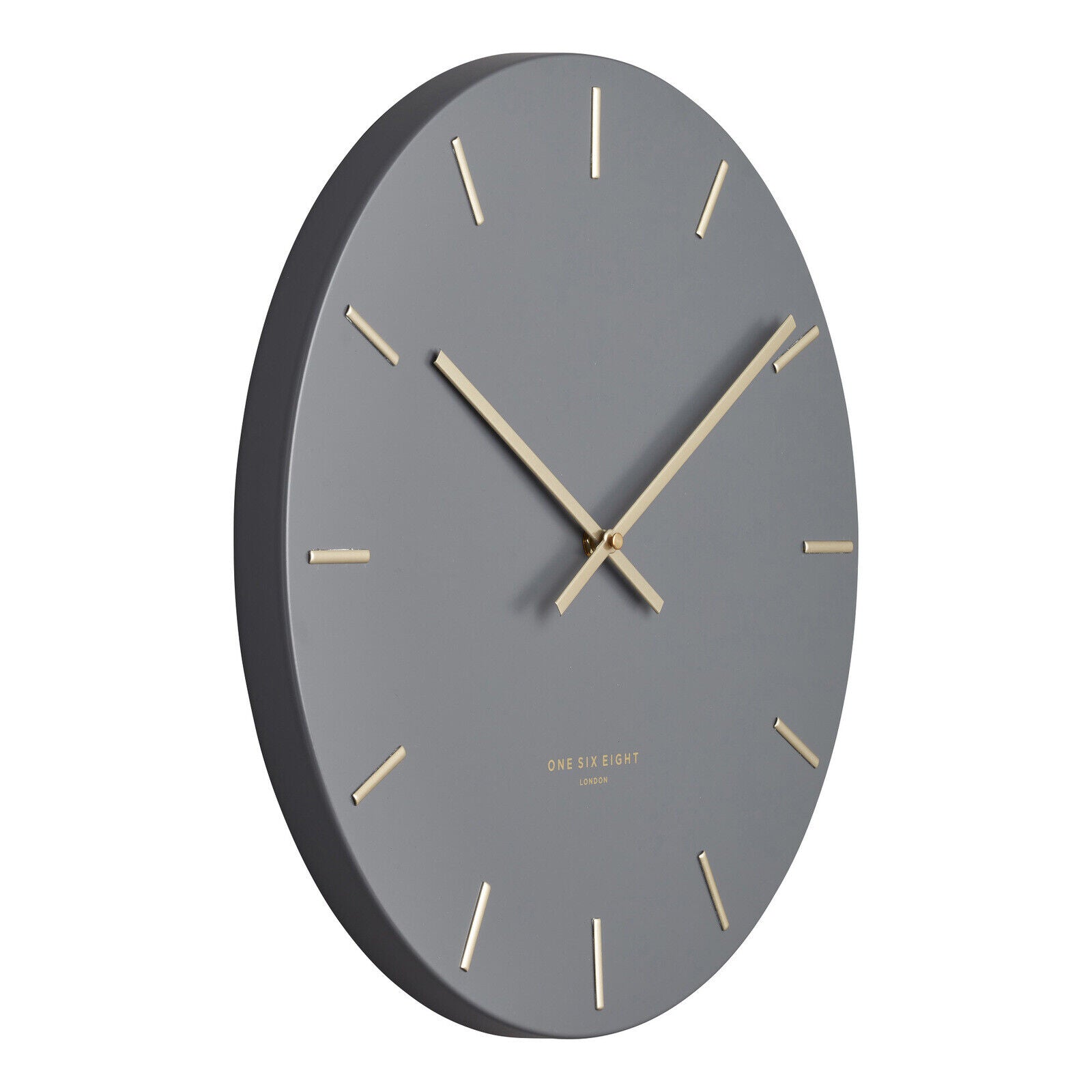 The Luca wall clock showcases neat simplicity and an on-trend minimalist vibe, alongside distinctive Art Deco influences. Constructed from pressed metal and enhanced with luxe metallic details, it has a contemporary elegance that will upgrade any interior in a chic way. It is sophisticated with a subtle glamour - a versatile piece and a modern classic. Although created with current interior trends in mind, this design will never go out of style. Available in 40cm and 60cm sizes Available in Charcoal and White Open dial with embossed markers High-quality silent quartz movement Industry-leading 5-year manufacturer's warranty Designed in the UK by One Six Eight London