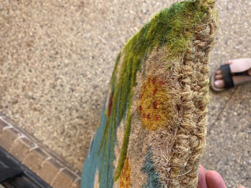 This lovely high quality thick door mat is made out of 100% coconut natural fibre with aqua background with grass and flowers and yellow and red butterflies and lady bug