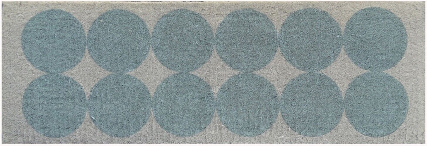 This lovely high quality thick door mat is made out of 100% coconut natural fibre and with grey background and blue/green colour cirlces on front of doormat