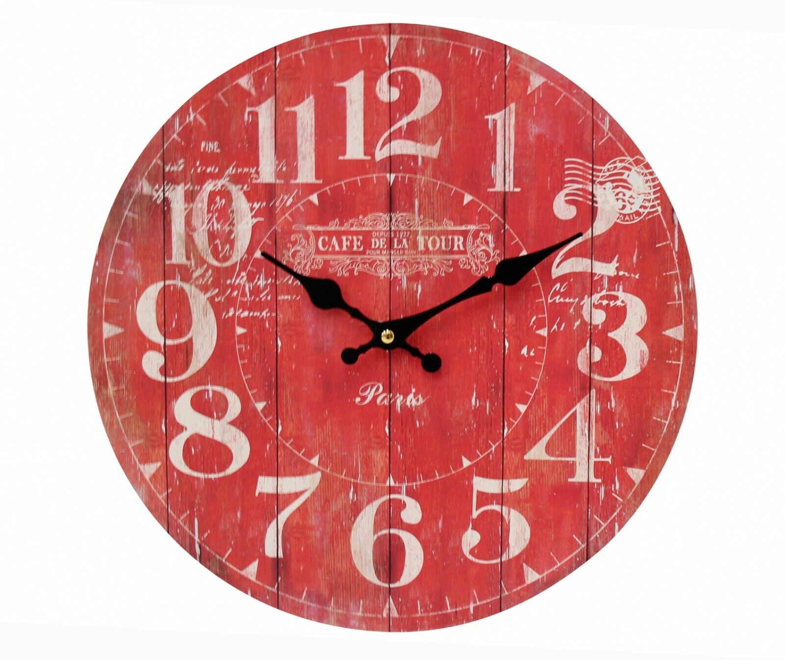 Round Wall Clock Clock De La Tour Red Vintage Hampton's French 34 cm